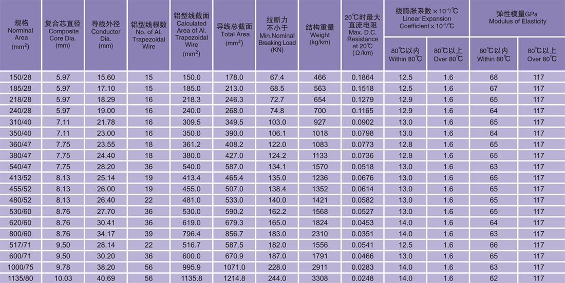 • 导线的直流电阻和交流电阻小,线路运行时线损小,导电率为63% IACS,比普通导线提高2个百分点
