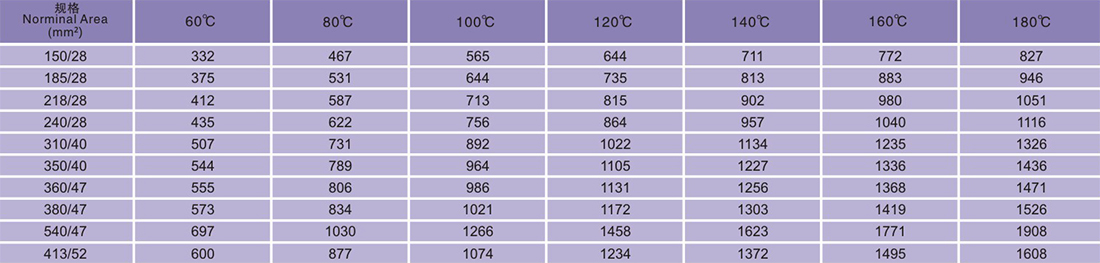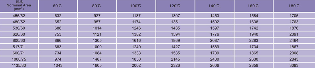 JRLX/T(ACCC/TW)碳纤维复合芯导线载流量表(A)