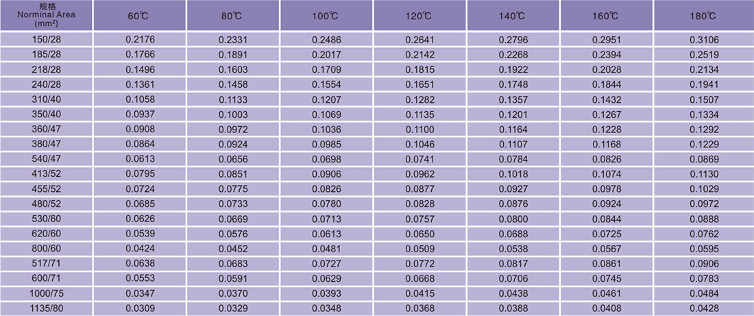 JRLX/T(ACCC/TW)碳纤维复合芯导线交流电阻表(Ω/km)