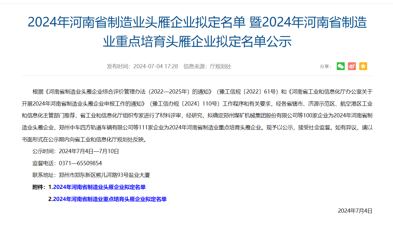 近日,河南省工业和信息化厅发布《2024年河南省制造业头雁企业拟定名单暨2024年河南省制造业重点培育头雁企业拟定名单公示》,河南通达电缆股份有限公司再次入选,这是通达股份连续两年入选河南省制造业头雁企业。