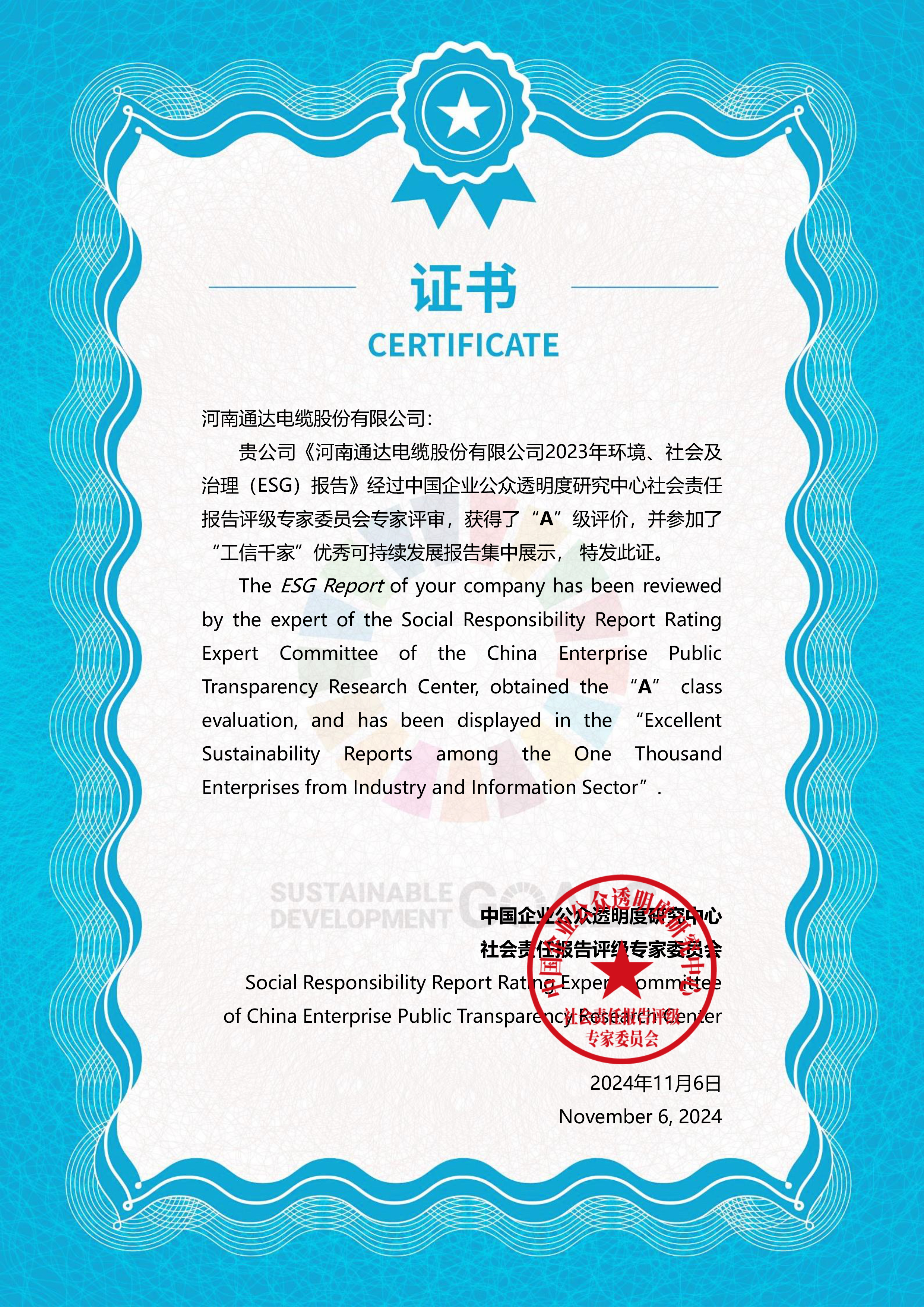 喜讯 通达股份ESG管理实践成功入选《中国企业绿色转型实践报告2024》和2024“工信千家”优秀可持续报告