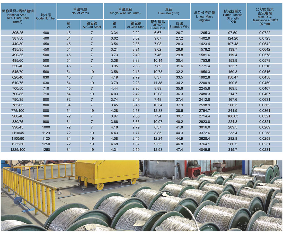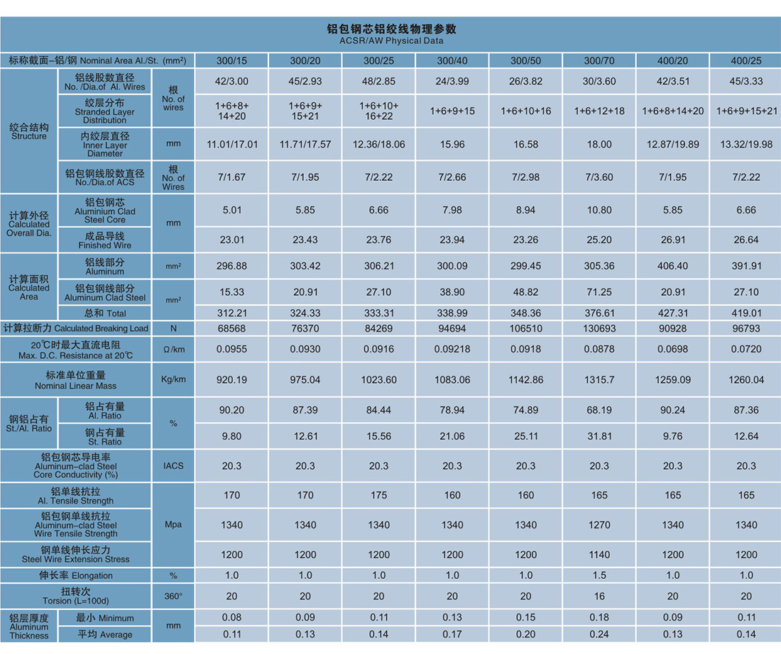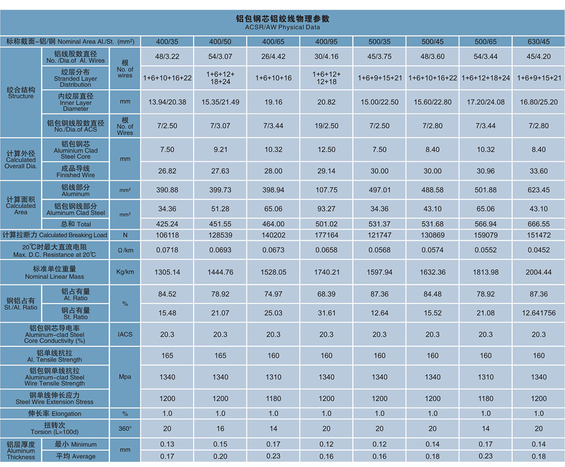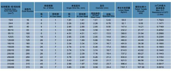 表1: JL/LB1A铝包铜芯铝绞线