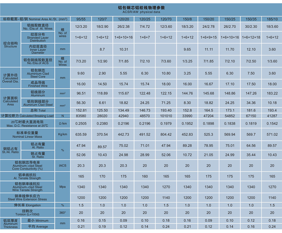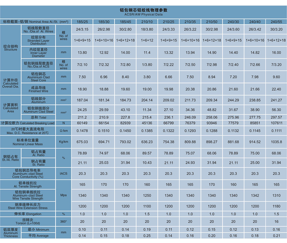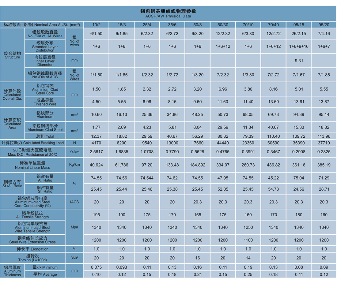铝包铜芯铝统线具有良好的控力重量比,耐振动瘦劳,有忧良的电气性能,具有良好的抗腐蚀性能和较长的使用寿命。产品广泛用于架空输电战路、接地线。电气化铁路承力索和地线。