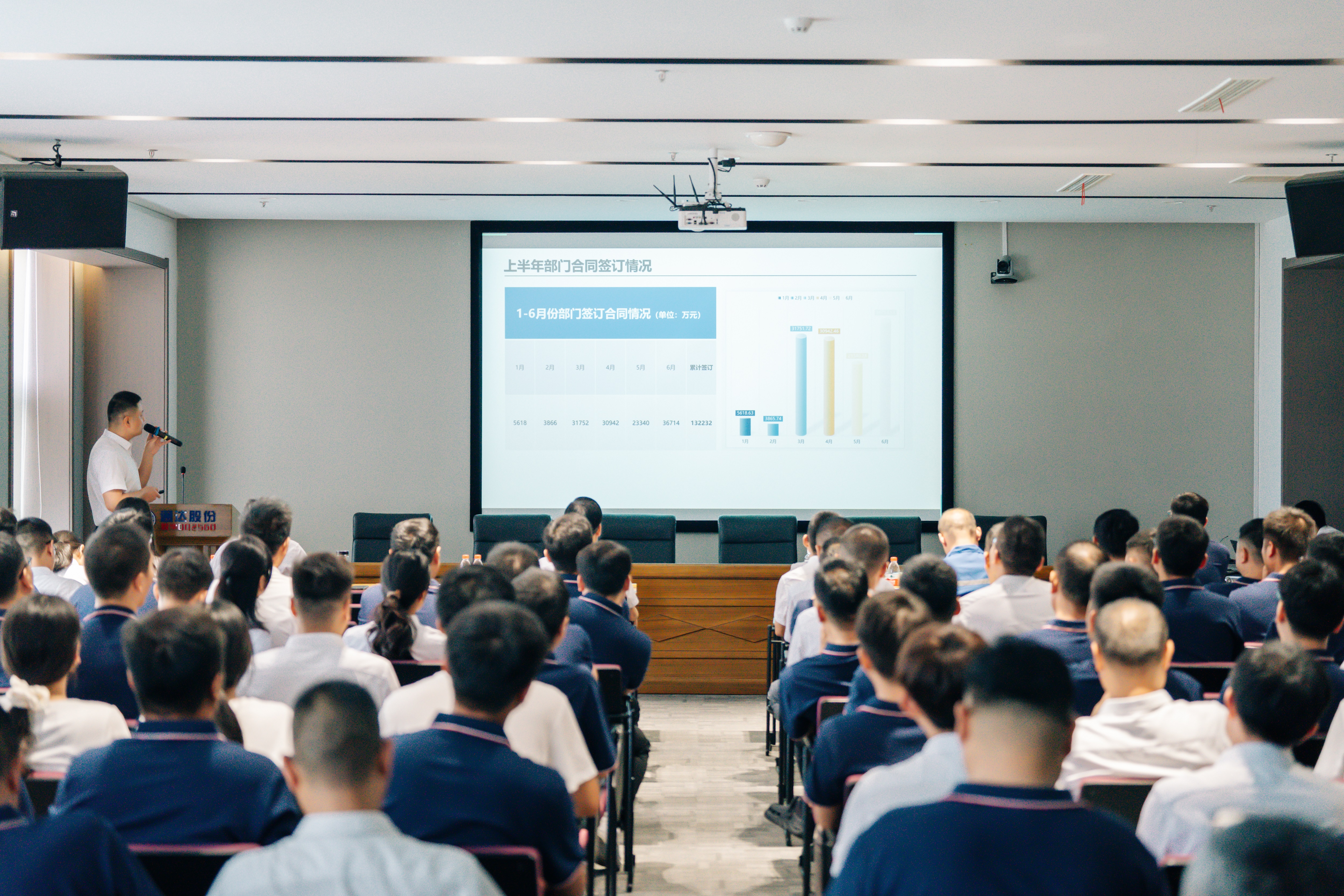 马总上台讲话并作出重要指示。上半年我们证明了团队的战斗力,但行业竞争仍在加剧。下半年,全体销售团队要以更高标准要求自己,紧盯目标、强化执行,共同走好通达的高质量发展之路!