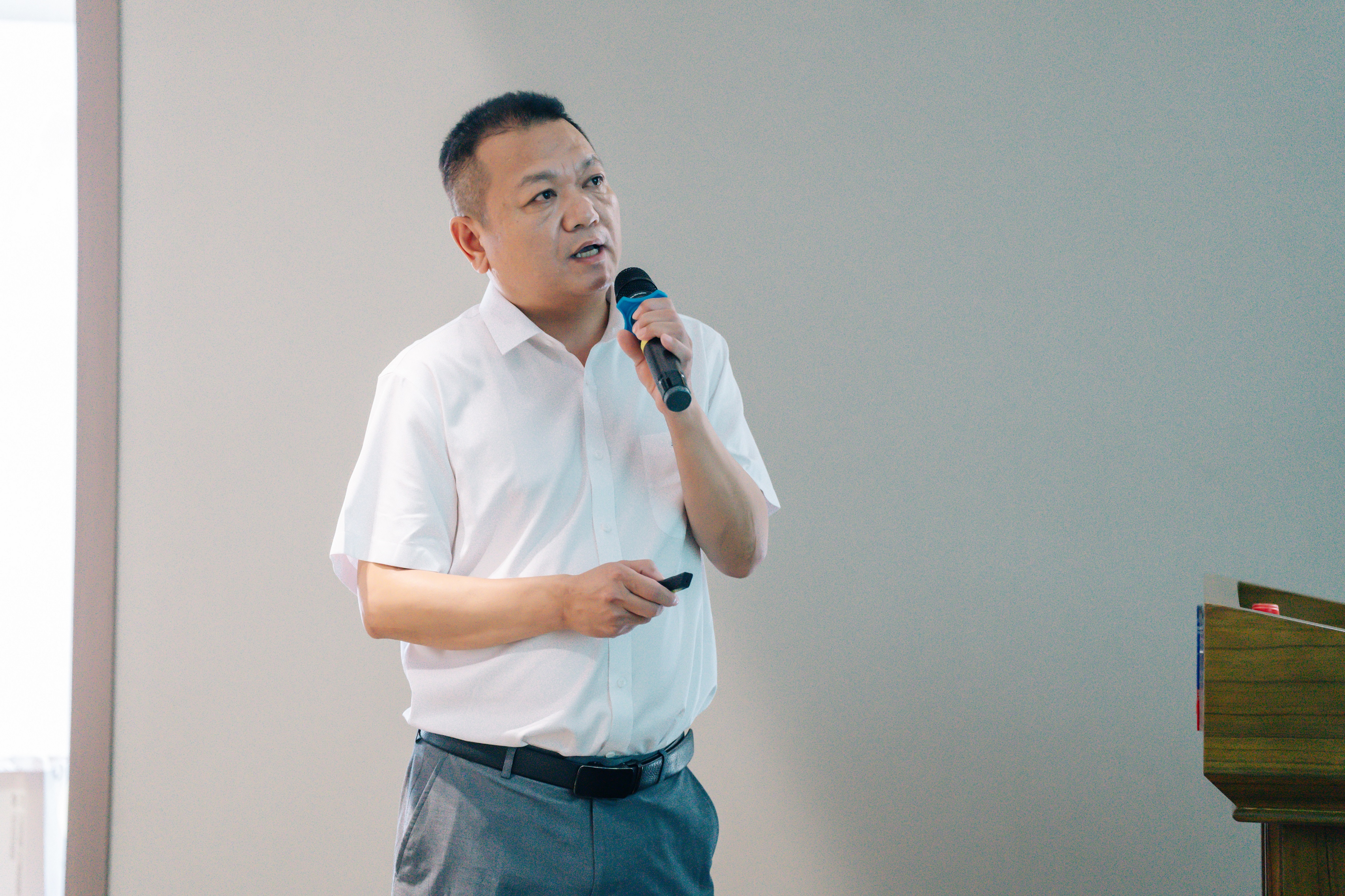 总经理曲洪普上台为销售团队布置重点工作,强调2025年下半年工作目标。