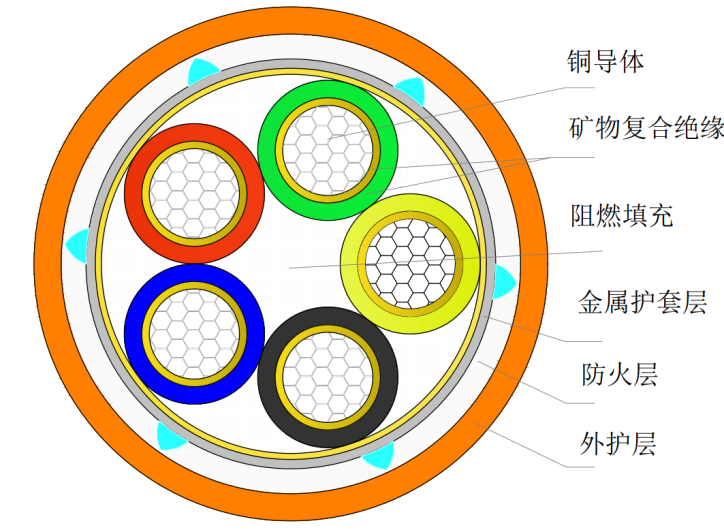 矿物复合绝缘铝护套隔离型防火电缆结构示意图: