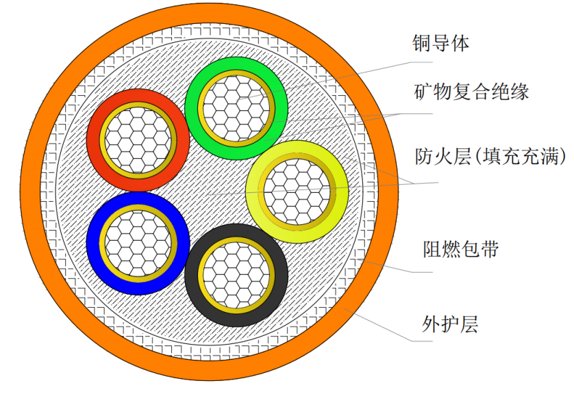 超柔性矿物复合绝缘防火电缆结构示意图: