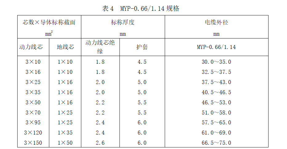 4.1.1 矿用移动橡套软电缆(MY、MYP)具有以下性能: