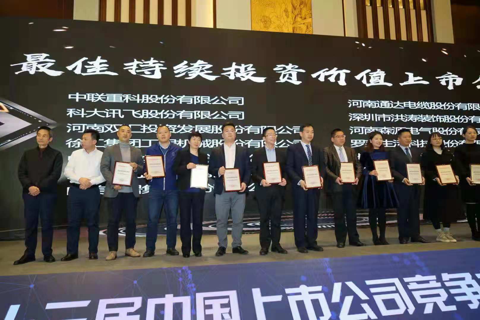 在本次调查评选中,公司荣获 “最佳持续投资价值奖”,公司董事、副总经理、董事会秘书张治中荣获“致敬改革开放40周年·功勋董秘奖”两项大奖。